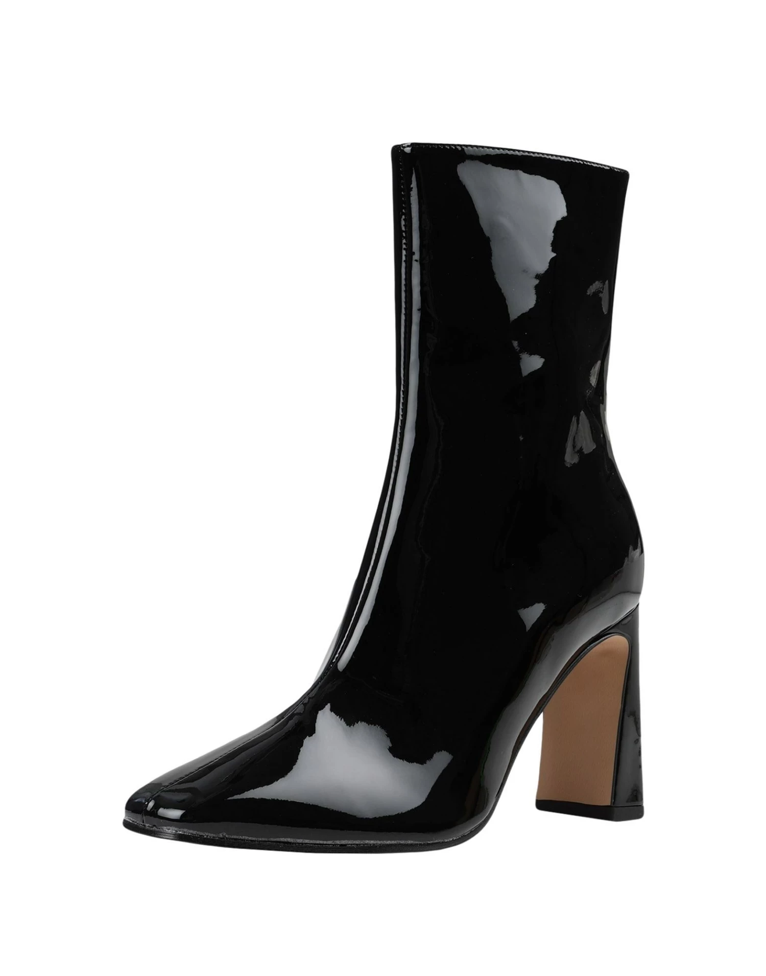 varnished effect, no appliqués, solid color, leather lining, zipper closure, square toeline, square heel, covered heel, rubber sole, contains non-textile parts of animal origin