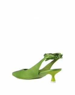 satin, no appliqués, leather lining, narrow toeline, leather sole, solid color, wrapping straps closure, spool heel, contains non-textile parts of animal origin